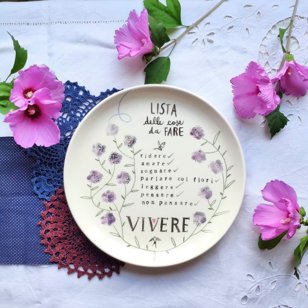 Portatorte in ceramica dipinta a mano – Lista delle cose da fare (32 cm)