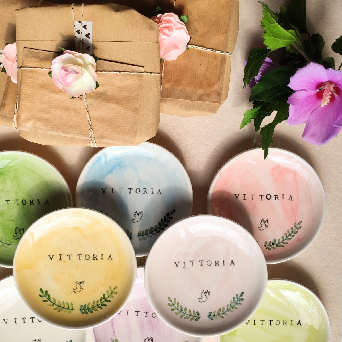Piattino in ceramica personalizzato – Bomboniera artigianale (12 cm)